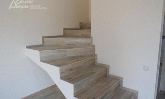 Описание внутренней отделки: свежий ремонт, в комнатах пол с подогревом выложен плиткой с имитацией доски, на стенах качественные современные обои. На кухне обои и плитка. Лестничный марш железобетонный, отделан ламинатом. В с/у установлена сантехника, на полу и стенах плитка